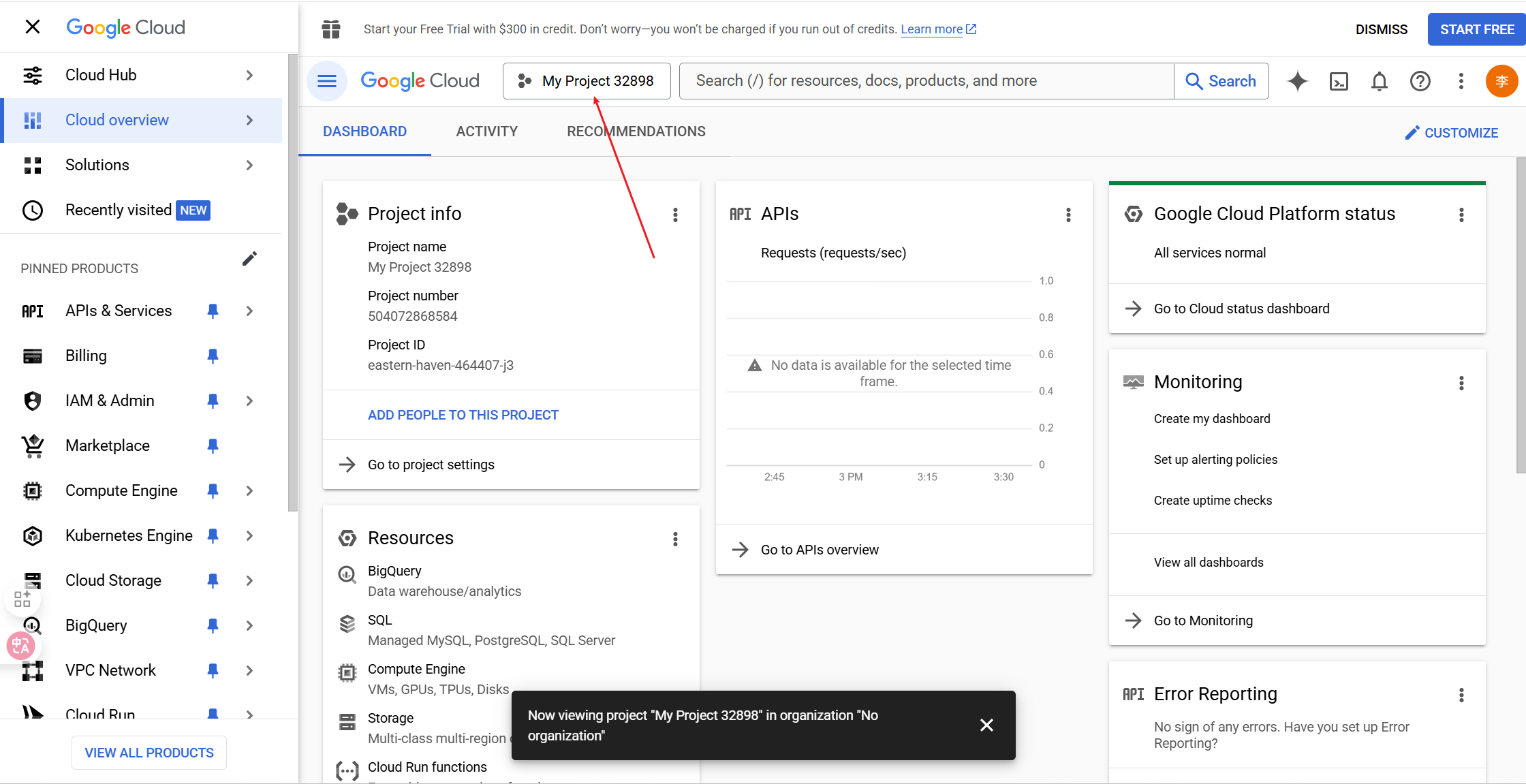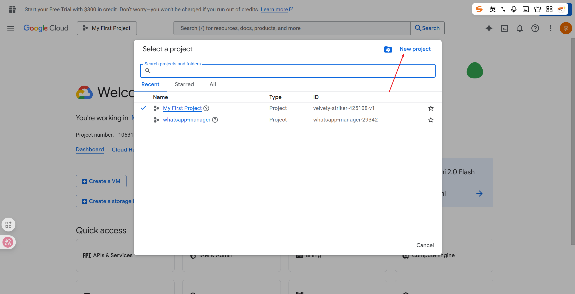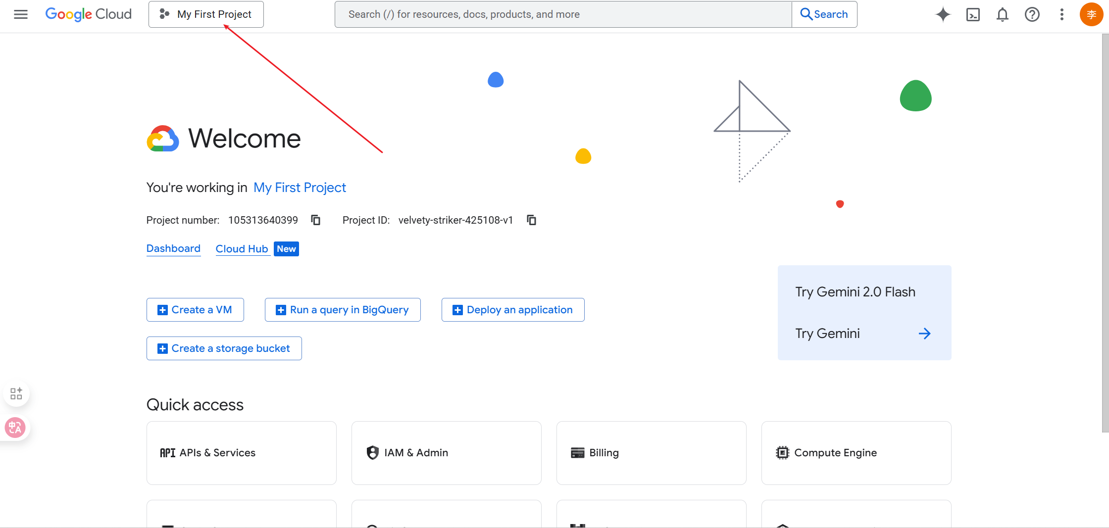访问这个链接 控制台,每个账号默认有一个项目,就叫 My First Project,点击它