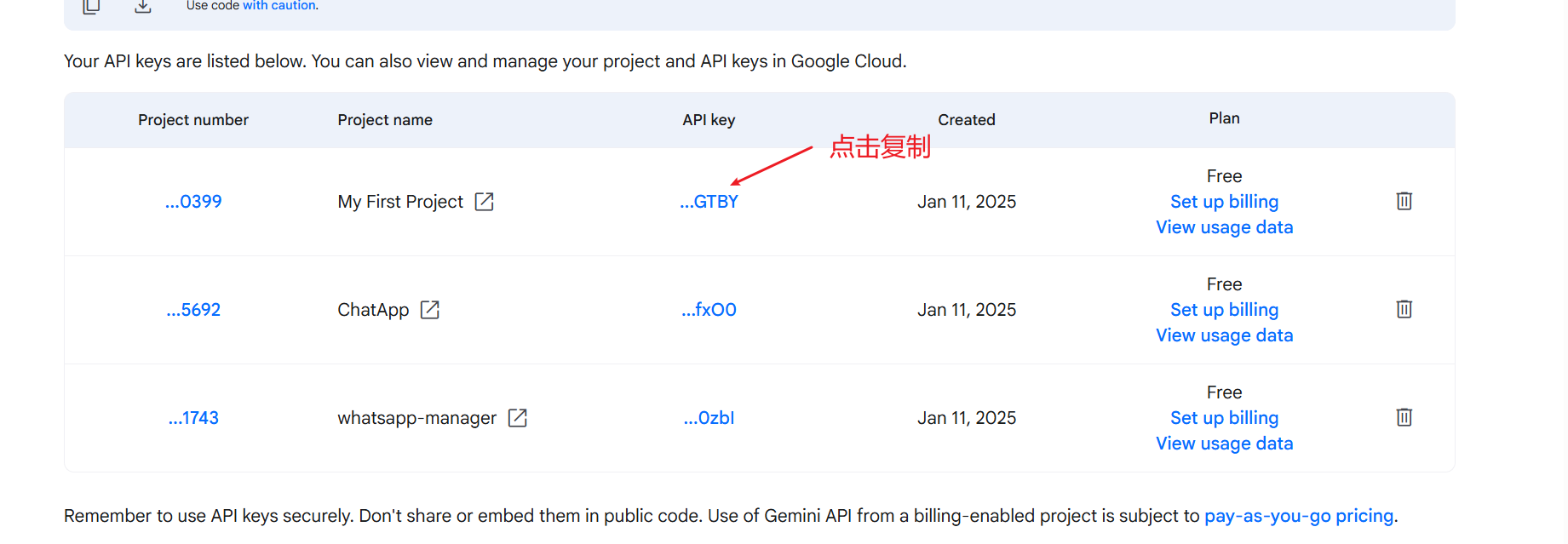 注意:1个项目创建多个Key和多个项目分别创建一个KEY是不一样的 Gemini 的配置是按照项目来分的,创建越多的项目,你的配额就越大